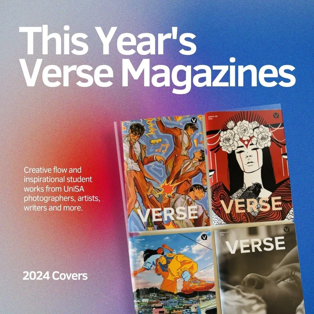 Since 2014, Verse Magazine has been UniSA’s student-led publication, produced in collaboration with the University of South Australia Student Association (USASA). Published six times a year across print and digital platforms, it has become a vibrant archive of student voices, ideas, and creativity, showcasing writing, art, photography, and multimedia contributions.